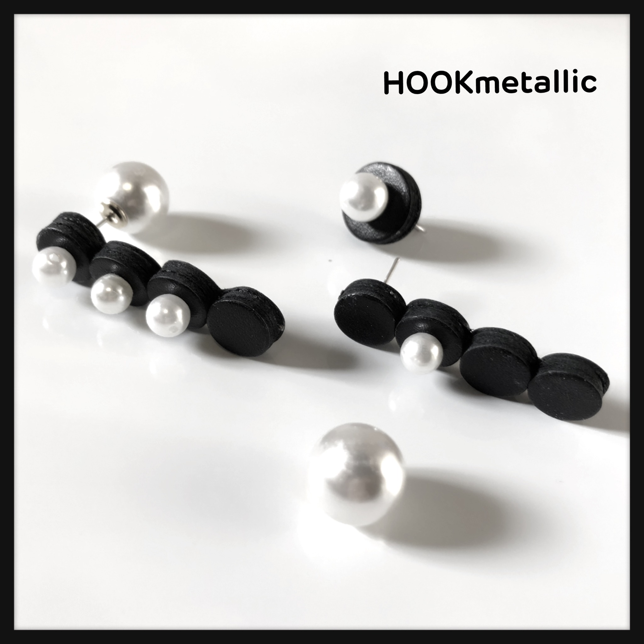 ブラックレザー×パールピアス&軟骨ピアス