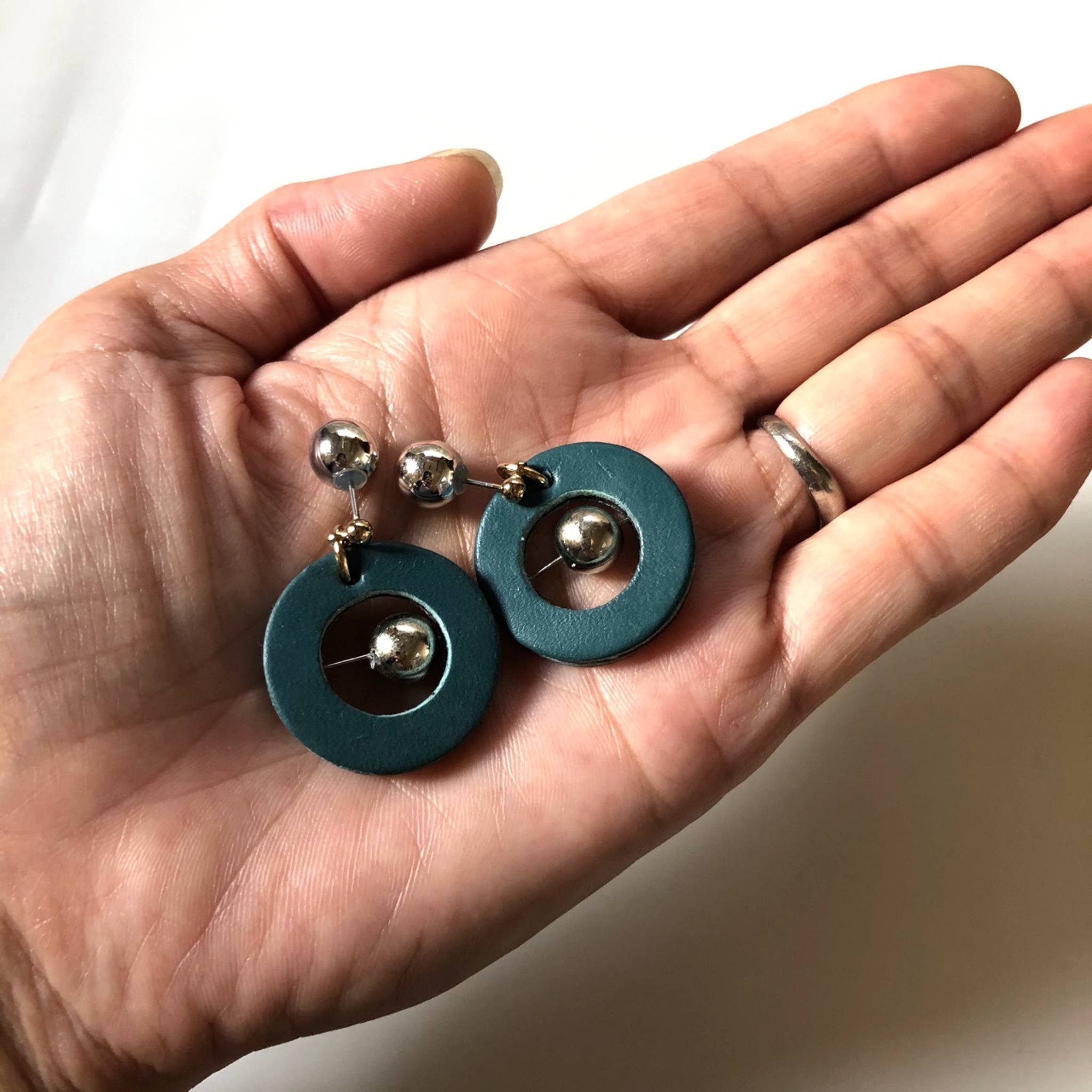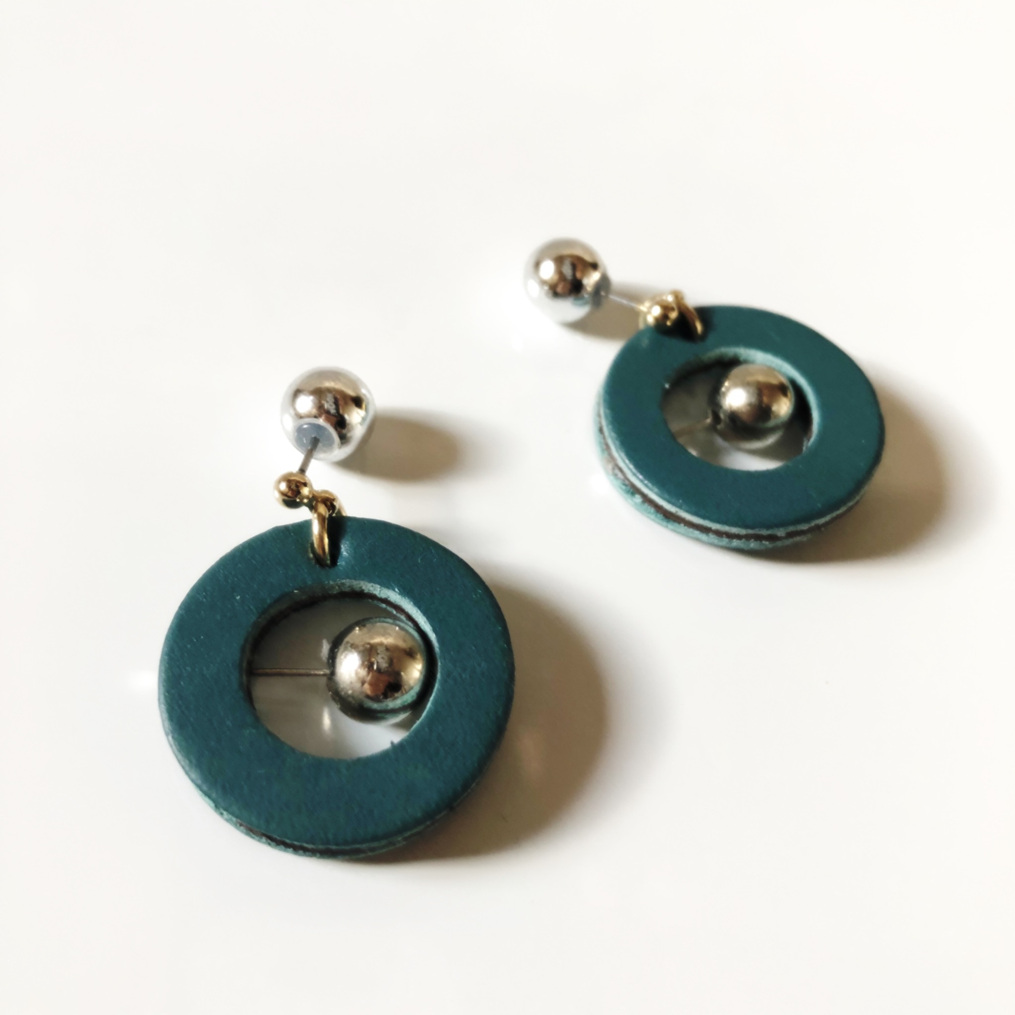 グリーンレザーちびピアス(リバーシブル) | HOOK https://gsfr3.app.goo.gl/1qpyXe @BASEec